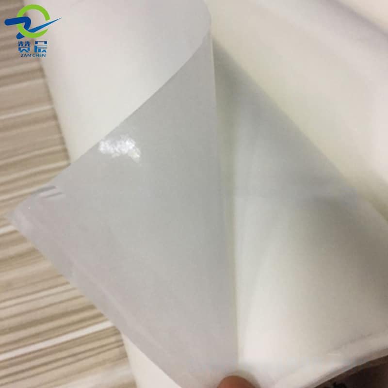 產品外觀:熱熔膠薄膜層+不粘膠的離型紙 (卷成一卷)